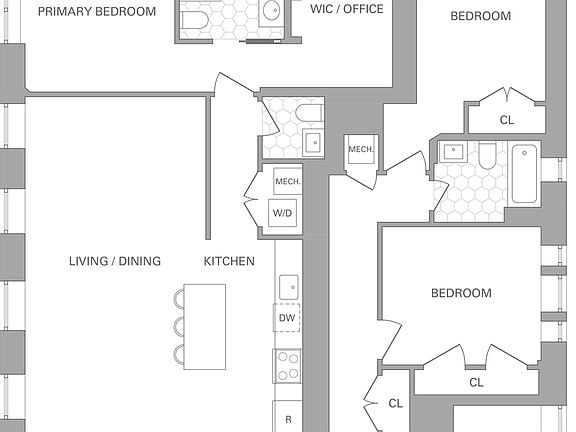 Newly Renovated Prospect Park West 4-Bedroom, 2.5-Bathroom with In-Unit Laundry, Central Air and Walk-In Closet/Home Office Located on the third floor of a six-story elevator building at the corner of Prospect Park West and 3rd Street, this newly renovated 4-bedroom, 2.5-bathoom apartment boasts over 1,850 square feet and features expansive South and West views with a sunny exposure. Inside the apartment, there is an open kitchen and dining area, connecting to a large open living room with a southern exposure and four large windows over 3rd Street. The renovated kitchen features full-sized stainless steel appliances, white shaker cabinets, stone countertops, and an integrated microwave. Adjacent the entryway, there is a foyer with two coat closets. There are four bedrooms in the apartment. The corner primary suite enjoys the privacy and serenity of the treetop and skyline views through two large windows, along with an en-suite bathroom and large space that can be utilized as a home office or walk-in closet. Down a separate hallway from the primary suite are three additional bedrooms, all with large closets, a second full bath, and an additional coat closet in the hallway. There is also a powder room adjacent the primary suite and a closet with an in-unit washer and dryer neatly tucked away. 70 Prospect Park West is a pre-war elevator building featuring spacious apartments, excellent views and easy access to Prospect Park. The building is also professionally managed, featuring a dedicated super and an online portal for rent payment and maintenance requests. Subway stations nearby include 7th Avenue (with entrances on 8th Avenue) for the F-train, as well as Grand Army Plaza for the 2 and 3-trains. Please note that some photos have been virtually staged.