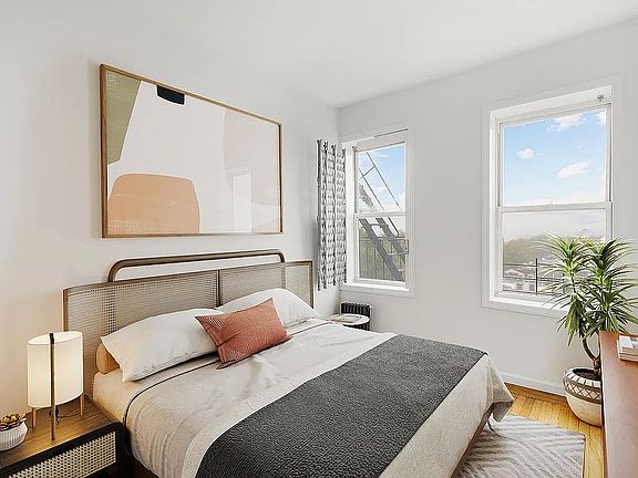 Welcome to this stunning renovated 2-bedroom apartment located on the fourth floor of a six-story elevator building at the corner of Prospect Park West and 3rd Street. This exceptional unit offers a modern kitchen, a renovated bathroom, an in-home washer and dryer, and captivating city views. As you enter through the foyer and entrance hall, you'll appreciate the two coat closets for added convenience. The central living area, complete with a spacious open kitchen, provides a perfect space for both living and dining. It also acts as a buffer, ensuring privacy between the two bedrooms. The renovated kitchen showcases stylish shaker cabinets, a tasteful subway tile backsplash, and full-sized stainless steel appliances. The primary bedroom is generously sized and offers breathtaking views of Manhattan. The second bedroom, situated at the front of the apartment, can easily serve as a private home office or provide additional flexible space to suit your needs. The windowed bathroom features vanity storage, a soaking tub, and modern subway tile, creating a serene atmosphere. 70 Prospect Park West is a charming pre-war elevator building that offers spacious apartments and fantastic access to Prospect Park. Nearby subway stations include 7th Avenue (with entrances on 8th Avenue) for the F-train, as well as Grand Army Plaza for the 2 and 3-trains. Please note that some photos have been virtually staged to help visualize the potential of the space.