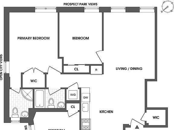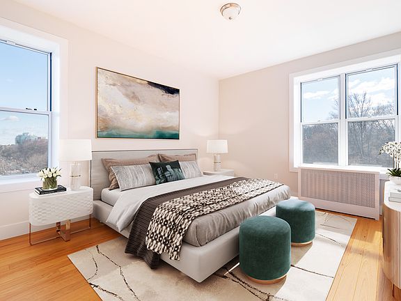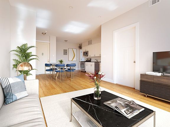 Prospect Park West 3-Bedroom, 2-Bathroom Aerie with Renovated Kitchen, Central Air and Expansive Views Located on the top floor of a six-story elevator building at the corner of Prospect Park West and 3rd Street, this renovated 3-bedroom, 2-bathoom apartment features expansive views of Prospect Park, as well as a beautiful vista overlooking Downtown Brooklyn and the Manhattan Skyline. Inside the apartment, there is an open kitchen and dining area, connecting to a large open living room with a southeastern exposure and two large windows over Prospect Park. The renovated kitchen features full-sized stainless steel appliances, white shaker cabinets, stone countertops, and an integrated microwave. The kitchen area has an adjacent open space which could be perfectly utilized as a dining area. Adjacent the entryway, there is also a walk-in coat closet. There are three bedrooms in the apartment, two of which face Prospect Park. The park-facing primary suite enjoys the privacy and serenity of the treetop and skyline views through three large windows, along with an en-suite bathroom and large closet. Two additional bedrooms also feature great views, one facing Prospect Park and another with a view of Downtown Brooklyn and Manhattan. 70 Prospect Park West is a pre-war elevator building featuring spacious apartments and excellent views and access to Prospect Park. The building is also professionally managed, featuring a dedicated super and an online portal for rent payment and maintenance requests. Subway stations nearby include 7th Avenue (with entrances on 8th Avenue) for the F-train, as well as Grand Army Plaza for the 2 and 3-trains. Please inquire about pricing information/structure. Some photos have been virtually staged.