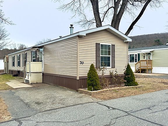 Welcome to Quaboag Valley Co-op! This impeccably maintained 2015 Colony 14' wide home (14'x68') features 2 bedrooms and 2 full bathrooms. The open kitchen, with a large island overlooking the living area, is perfect for entertaining. The laundry room, near the kitchen, includes cabinets for extra storage and a 4-year-old GE HE washer and dryer. Recent furnace updates include a new blower motor, pressure switch, and thermostat. Central AC and forced heat ensure year-round comfort. The home also includes 2 propane tanks. Additional storage is provided by a 10'x16' shed with electricity, a freshly stained shed ramp, and back porch. The roof was professionally cleaned in September. Off-street parking is available for 2 cars with 2 driveways. Conveniently located near the Mass Pike, the $280 community lot fee includes water, sewer, trash removal, snow removal, and property taxes. The $14,000 Co-op Buy-in is included in the purchase price. Come see this charming home today!