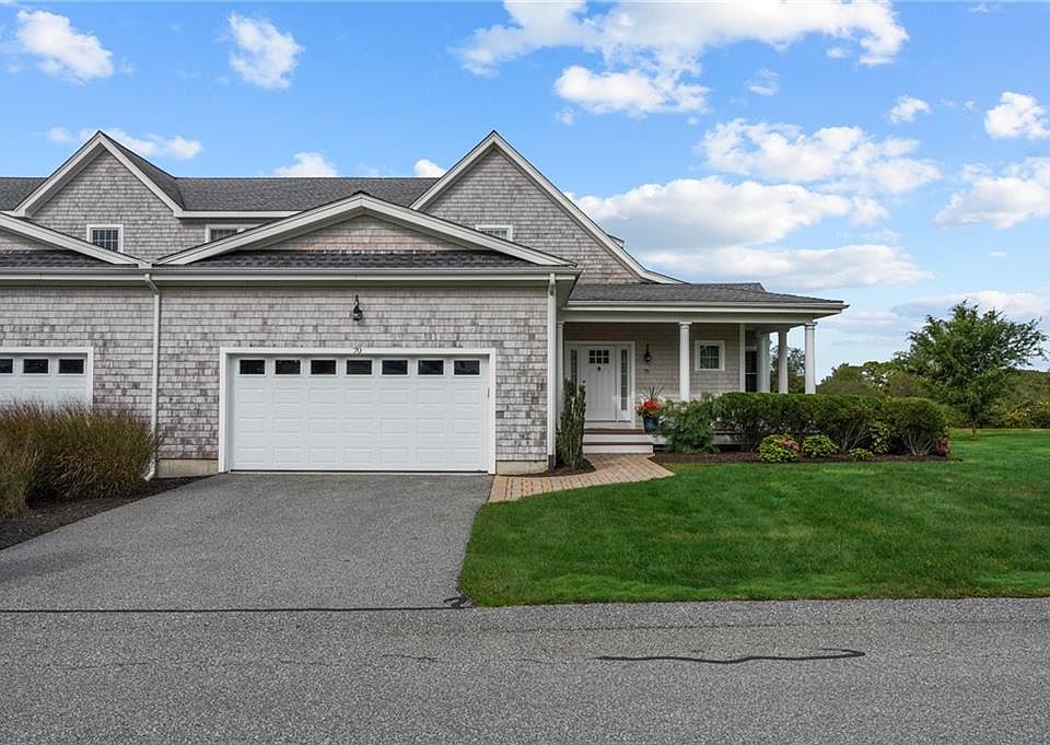 Introducing 70 Rebels Way. This sun-soaked condo at Prescott Point offers 2-bedroom, 2.5-bathroom, and over 2300 square feet of living space. This corner unit is a serene retreat with a private back deck and stone patio, perfect for outdoor grilling and relaxation. Step inside and be greeted by high ceilings and an inviting open floor plan, featuring a large center island kitchen with stainless steel appliances and granite countertops. The living and dining areas flow seamlessly, anchored by a gas fireplace, making it ideal for entertaining. The first-floor primary suite boasts a well-appointed walk-in California closet and an en-suite bathroom with timeless tile floors and a walk-in shower. Thoughtful upgrades include crown molding, a built-in entertainment center, a custom bar area, and a beautifully crafted fireplace mantle. Additional features include a spacious front porch, a 2-car garage with shelving for extra storage, and an industrial dehumidifier in the basement. Located just minutes from Middletown, Newport, and stunning beaches, this home is a perfect blend of style, comfort, low-maintenance, and convenience.