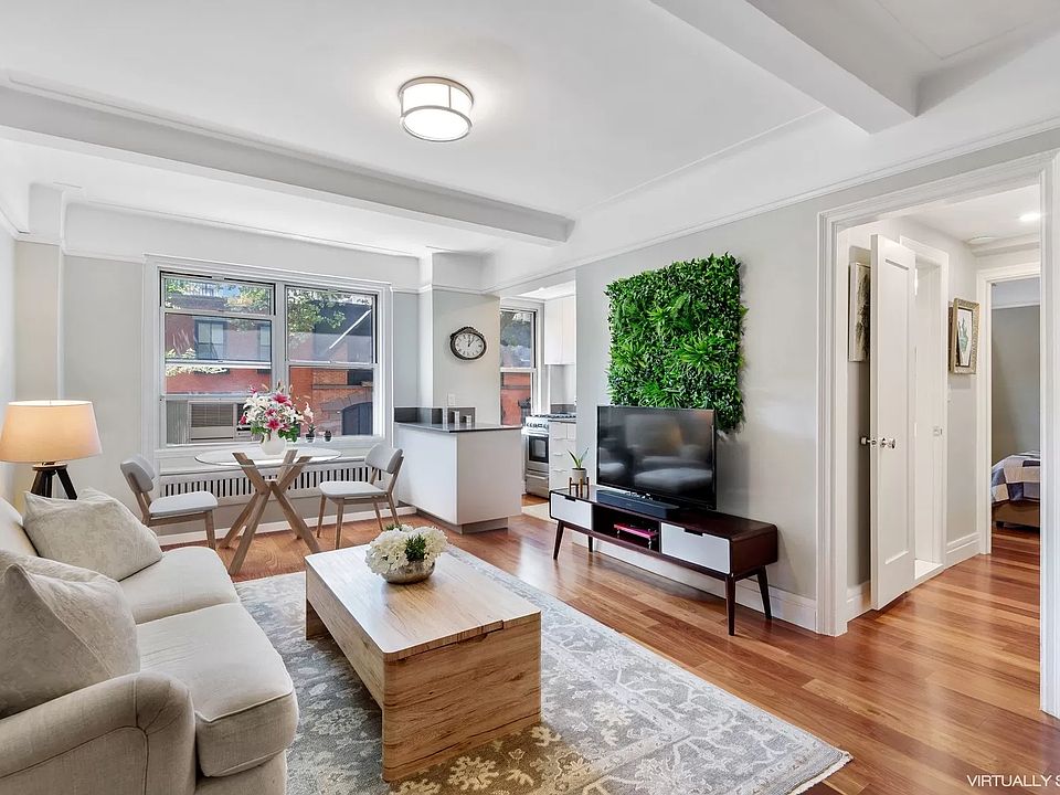 Unit 1G at 70 Remsen Street, in Brooklyn Heights, is a fully renovated, south facing, one-bedroom one bath unit. There are beautiful views, from all windows, of the Grace Court Alley landmark carriage houses. Electricity, cooking gas, hot water and heat are included in the monthly maintenance. The building is pet friendly. Sublets, co-purchasing and non-primary occupancy are welcome. Unit 1G has been meticulously designed and gut renovated by the previous owner, an award-winning architect, who supervised the home's redesign and construction. There are beautiful hardwood floors that have been expertly installed, the walls have been skim coated and there are new crown and base moldings throughout this unit. The renovated windowed kitchen is open to the living room. The kitchen features white custom cabinetry, Caesarstone countertops, a panelized Bosch dishwasher, and stainless steel appliances, including an Avanti gas range and an LG refrigerator. The fully renovated windowed bath features porcelain flooring with a white tiled glass enclosed stall shower, a Riobel rain shower with a handheld fixture and a Ronbow custom vanity. There is an entry foyer with a coat closet that leads to a large living room that offers ample space for lounging, dining and working from home. There is a walk in closet and the bedroom entrance does not share a wall with the living room, creating privacy and separation. The spacious bedroom has space for a king-size bed, night stands, dressers and a sitting area or home office. The bedroom is equipped with a ceiling fan. The Remsen is a timeless and classic full-service 10 story cooperative residence from 1928, welcoming you with an elegant pre-war lobby combined with the modern attentive services of a full-time super and 24/7 concierge. The building has a laundry room and bike storage is available for a monthly fee in the lower level. Situated between Hicks and Henry streets on a coveted block, 70 Remsen Street is close to the Promenade with its incredible views of the East River and Manhattan. Active outdoor enthusiasts will enjoy the Brooklyn Park Piers that offer recreation, sports fields, and sailing clubs. Surrounding the Remsen there is plenty to choose from in shops, boutiques, markets, restaurants, and bars. Convenient transportation on the R 2 3 4 5 trains is just a few blocks away.