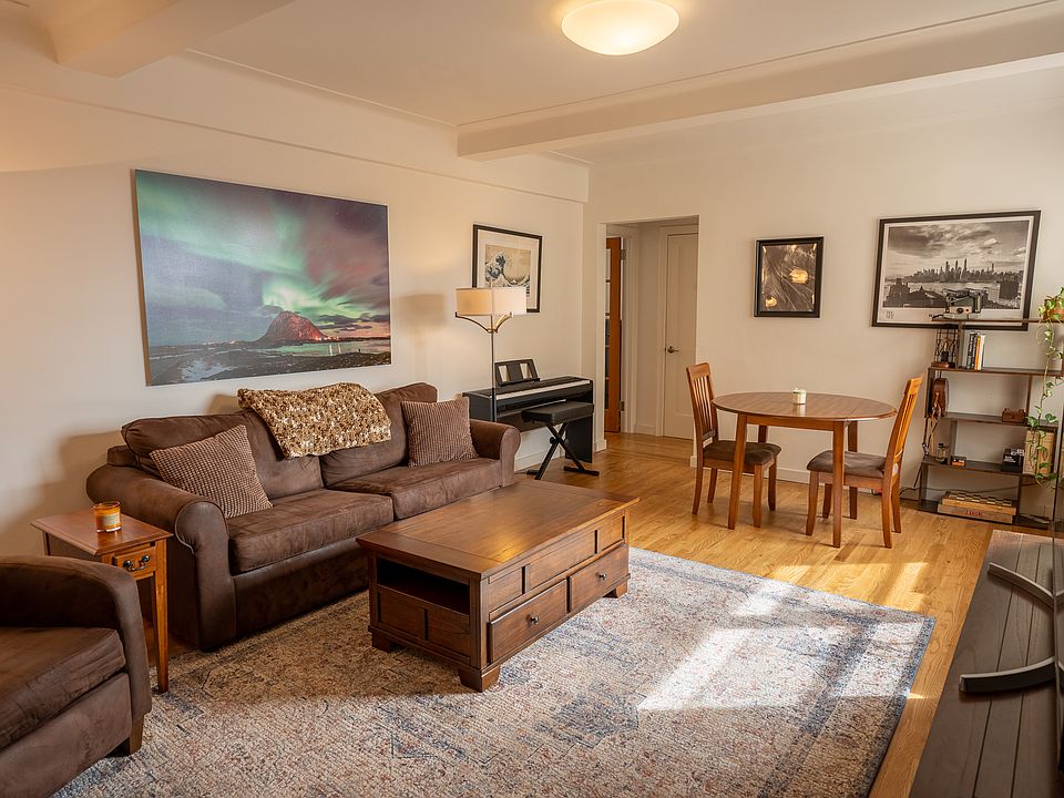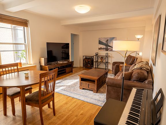 Oversized 1 bedroom in an historic, prewar co-op on a quiet, tree-lined street in Brooklyn Heights. Sunny with great southern and eastern exposures. Bedroom has huge windows, a walk-in closet and easily fits a desk and a king-sized bed. Great closet space throughout the apartment. Huge living room with plenty of space to hold a dinner party. Comfortable couch folds out to a queen-sized bed. 24 hr doorman, bike room, package room and laundry room. 1 block from the promenade and Brooklyn Bridge Park. Around the block from shopping, bars and groceries. 5-minute walk from 2,3,R,4,5 subway lines, 8 minutes from A,C. Walking distance to Trader Joe's and a great farmer's market at Borough Hall (Saturdays and Tuesdays). Barclays Center, Dekalb Market, Atlantic Terminal, and several movie theaters are all very close. Rent includes all utilities including internet. Pet friendly building. No fee. Furnished or semi-furnished preferred. Requires board approval.