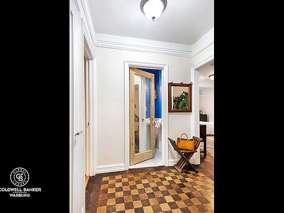 Two spacious closets flank the entry to apartment 9D, both recently painted with new hardware. The modern windowed bathroom with tub and rain shower is accessible from the foyer, and retains the original flushometer toilet and updated pedestal sink. The updated, windowed kitchen includes a dishwasher, microwave and ample counterspace for the most accomplished chef. . A generous great room with large east facing window graciously accommodates a queen size bed, home office and seating area. The living area and foyer retain the original cork floors, which have a lovely patina and have been restored . The floors are not only sustainable, but provides sound insulation, as well as a soft walking surface, eliminating the need for carpeting.