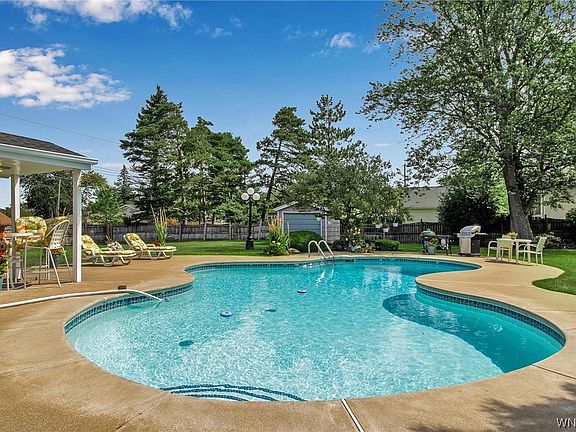 Vacation in your own backyard! Lovingly maintained by the original owners, this all-brick Colonial features a fabulous inground pool and 3-season patio room/entertaining space! Over 2900 square feet of spacious rooms; Huge LR with dry bar and original hardwoods under carpets; Formal DR with crown moldings; Large Kitchen overlooks Family Room with pegged hardwood flooring, stone WBFP, and Dutch door to Patio Room; 3 large Bedrooms with great closets includes Master with en suite Bath; Unique storage room with abundant cedar closets; Enormous Rec Room in basement with built-in bar, pool table, and WBFP; Sideload 2 Car Garage is also finished to be an entertainment space; Whole-house generator; 3/4 acre fenced lot with pool house and large storage shed; This is a quality-built house with so much to offer! Showings start immediately. Offers, if any, are due Monday, 8/28, at 10:00 am.
