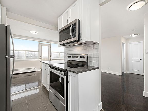 At Rexdale Court, 70 Rexdale Boulevard, you'll find beautifully renovated one- and two-bedroom rental suites designed to balance modern style with everyday comfort. The layouts are open concept, with sleek kitchens featuring stainless steel appliances, tiled backsplashes, laminate countertops, and breakfast bars. Each suite is freshly finished: new flooring throughout, updated light fixtures, new mirrors and vanities in bathrooms, crisp paint, and modern hardware that tie everything together. The building adds conveniences you'll appreciate every day: on-site management and maintenance, indoor & outdoor parking (for both residents and guests), pet-friendly policies, and laundry facilities just steps from your door.