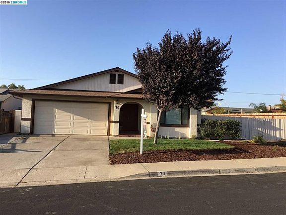 70 Rhine Ct, Oakley, CA 94561 is a single family home that contains 1,533 sq ft and was built in 1985. It contains 3 bedrooms and 2 bathrooms. This home last sold for $76,500 in September 2025. The Zestimate for this house is $533,200. The Rent Zestimate for this home is $2,909/mo.