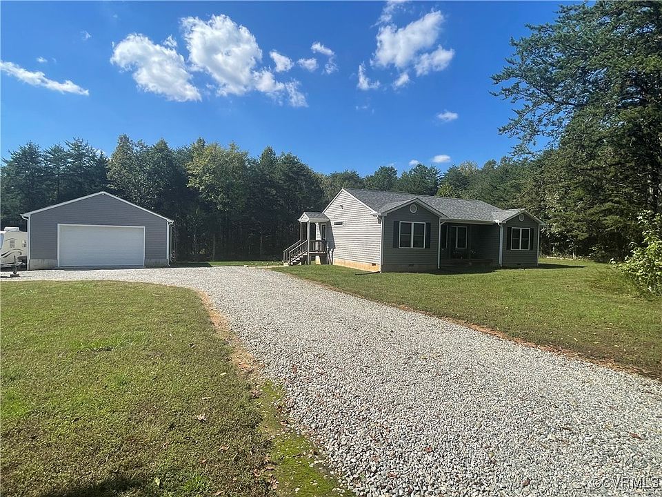 Discover your peaceful retreat in this spacious 3-bedroom, 2-bathroom home nestled on 5 acres in Cartersville, Virginia. Enjoy the tranquility of country living while being conveniently located near local amenities. Step inside to find a welcoming living room adorned with hardwood floors. The kitchen features granite countertops, perfect for your culinary adventures. You'll also find three generously sized bedrooms, each offering a private sanctuary. The primary bedroom features an attached bathroom with marble double sinks and a stand in shower. Outside find a 28x26' detached garage that provides ample space for vehicles, shop work and storage. Come see this quiet escape today!