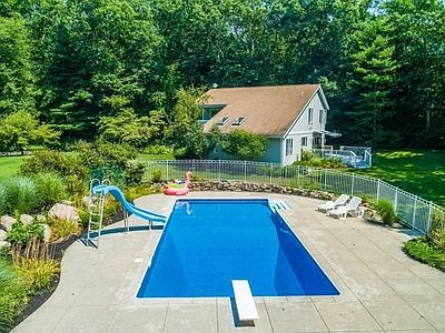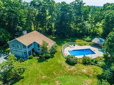 Privately located at the end of a cul de sac with 1.65 acres, the home provides total privacy for the new homeowner. Sit by the sparkling, secluded, in-ground pool with pool house and enjoy your summer days. Countless recent upgrades include updated kitchen and baths, 4 bedrooms including large master suite with private deck to enjoy the evening sunsets.