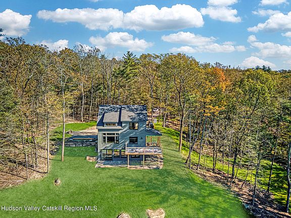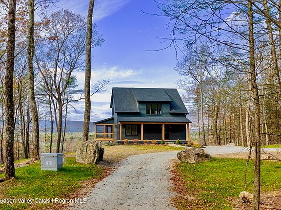RARE CATSKILL VIEWS. Another brand new construction completely finished by Rhinecliff Builders, one of the areas highest quality design/build team. Bask in the unparalleled mountain vistas from your private 15-acre retreat in the sought after town of Marbletown. This Scandinavian-inspired farmhouse, now finished & fully built, blends modern elegance with timeless simplicity. The open floor plan features a wall of windows framing the breathtaking views of the Catskills, while the two-story stone fireplace and a custom-designed timber staircase complement its mountain escape feel. With four spacious bedrooms and three full baths, this home offers ample space for family gatherings or entertaining friends. Even the fully finished lower level has exceptional views.