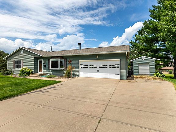 Lots of extra features in this desirable and centrally located in Platteville, WI ranch home near parks, pickleball courts and more! Some of the many features include 3 bedrooms, 3 bathrooms, 2 car heated garage, primary bedroom has full bathroom, hardwood floors, living room fireplace, pantry, large main level laundry area, deck, fenced in yard, tree/play house, and a finished basement with bar area for additional entertaining. There is also a extra shed for more storage. The many features of this home is sure to appease a wide range of needs and to check alot of boxes for your next home.