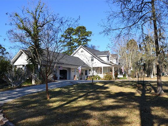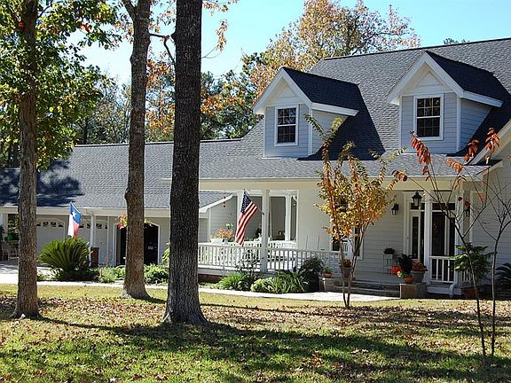 Lovely house with a country feel within a couple walking minutes of Lake Livingston! Sitting atop nearly 3 acres this house is fantastic for the full time owners or a relaxing getaway for of a weekend house! Open concept kitchen, breakfast nook, and living room. Large windows throughout the entire house bring in lots of daylight! First floor master with a master en-suite. Three bedrooms down, one bedroom up attached to a media room! Three car expanded garage set up well for a potential work shop with extra room currently used as a home gym. Beautifully landscaped, outdoor fire pit, 12 x 16 stoarge cottage, front and rear covered porches, breezeway, carport and more. Nestled in the gated community on Lake Livingston called Cape Royale!