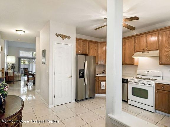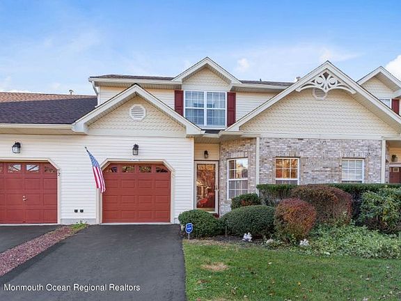 This 2-story town home at ''The Pavilion'' 55+ in Brick! This home has a unique floor plan that provides privacy for both bedrooms! Newer Tile flooring as you walk in leads to an open living and dining area with vaulted ceilings and a slider to rear patio area and yard. Main floor master BR has walk-in closet and full bath. Powder room for guests and direct entry to the garage on the first floor. Upstairs you'll find the perfect loft for many ideas, like grandchildren play-area or a in-home office. The spacious 2nd bedroom, full bath with tub and Walk-in double closet in the upstairs level. Furnace and A C installed within last 5 years. ''Le Club'' has a fitness center, billiards, library, pool, tennis and more. This community is close to everything, shops, highway, Grocery and malls.