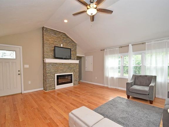 *DRASTIC PRICE IMPROVEMENT* Absolutely stunning & completely updated! This home looks like an adorable ranch from the front, but has so much more to offer than you'd think! Step inside the cozy floor to ceiling fire-placed living room featuring high ceilings, gleaming hard wood floors & tons of natural light. You'll be wowed by the bright eat-in cathedral-ceiling kitchen which features tile backsplash, granite countertops, beautiful white cabinets, NEW s/s appliances w/ wine fridge! Loft space above the kitchen has pull down access & plenty of room for storage! Down the hall is a full bath w/ washer/dryer hookup, the master bedroom w/ a large walk in closet along w/ 2 additional bedrooms & a shared full bath! At the end of the hall you'll find access to the large back deck where you can sit back & relax overlooking the Stoneville Brook! Convenient 1 level living! Great Location! Close to Shopping, Public Transportation, Restaurants & More!