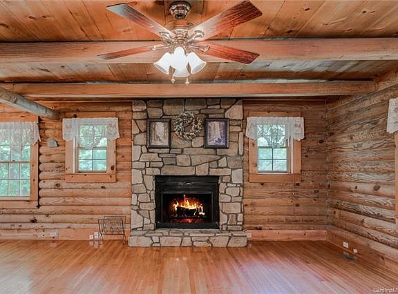 Enjoy year round mountain views including views of Mount Pisgah from this charming log cabin located within close proximity to the best towns and outdoor amenities western North Carolina has to offer. Relax on the large covered porch overlooking the 1.36 acre yard featuring raised garden beds with berries & your home grown vegetables. Step into the home and experience your mountain getaway with exposed log walls, wooden beamed ceilings and a stone stacked fireplace. The kitchen has all stainless steel appliances & opens to the dining area and great room plus easy access to the back deck which is great for grilling! There are two bedrooms with 2 baths on the main level, and an additional bedroom and bath ensuite on the lower level. Plus the garage and lower level bonus room or workshop (with utility sink) are heated and cooled too. All this and mountain views conveniently located 20 minutes to Hendersonville, Brevard, Pisgah National and Dupont State Forests and 35 minutes to Asheville!