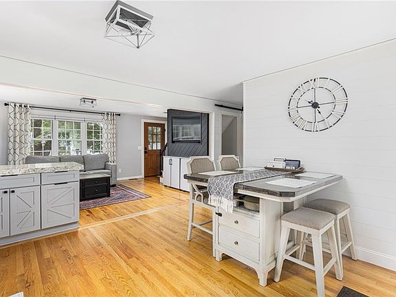 Welcome to this beautifully expanded Cape featuring 4 bedrooms and 2 full baths, thoughtfully updated and tastefully decorated throughout. Renovated kitchen with granite countertops and newer appliances flows seamlessly into the living areas-ideal for entertaining and everyday living. Sunlit family room features custom built-in media center, shiplap detailing and a stylish barn door leading to lower level. Enjoy the convenience of a first floor suite complete with renovated bath and spacious walk-in closet. Hardwood floors throughout the first level and replacement windows provide lots of natural light. A second bedroom completes the main level. Upstairs are two inviting bedrooms with renovated full bath and plenty of storage. Lower level provides a versatile layout with a recreation room, office space and utility room. Additional highlights include new electrical service, HVAC, hot water tank, freshly painted interior, young roof, new slider and exterior doors. Outside enjoy your large deck overlooking private fenced yard with a fire pit and gate that opens to walking paths. Convenient location near all amenities.
