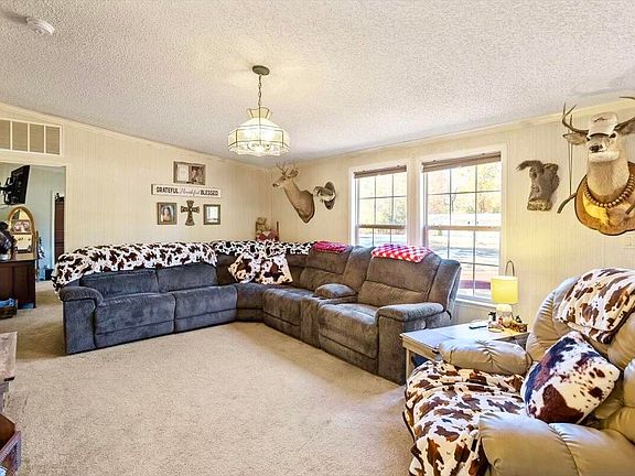 Welcome to this spacious and thoughtfully updated 4 bedroom, 2 bath manufactured home that blends modern comfort with country charm. Step inside to discover two inviting living rooms—one featuring a cozy wood-burning fireplace—along with a generous kitchen offering a center island and eat-in dining area. The laundry room includes a large pantry for extra storage, and the outdoor patio provides a great place to relax and entertain, complete with a fenced backyard for privacy and outdoor enjoyment. The large primary suite feels like a private retreat with its own sitting room. The bathroom has double vanities, a separate tub and shower, and an expansive walk-in closet. Recent upgrades include a roof just five years old, an HVAC system under two years old, a new well pump, and a new 52-gallon electric water heater. With LVP flooring, new carpet, and a fenced backyard, this home is move-in ready. The heated and cooled shed, complete with electricity, offers endless possibilities—ideal for a workshop, studio, or hobby space. Experience the best of peaceful country living with modern updates and room to relax, unwind, and make yourself at home.