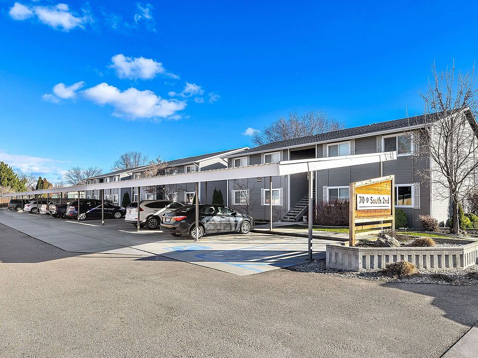 This downstairs two bedroom, one bath apartment is ready for you to call it your home. Large bedrooms with large closets. Laundry room in unit. Stainless steel appliances in kitchen. Granite counter tops. Lots of storage in the unit. Patio in rear of apartment to grass area. Water and trash included in the rent amount. No rear neighbors. A very quiet neighborhood. One covered parking stall and several guest parking stalls available. This property wont last long. Great location near shopping, grocery stores, banks, parks, and schools.
