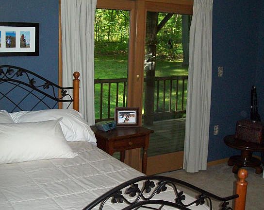 Beautiful log-sided home with wrap around porch on 1.6 quiet wooded acres. Landscaped with circle drive. Interior gorgeous with some knotty pine and cathedral ceiling.Three bedrooms, three bath. Newly remodeled kitchen with granite and stonework. Master suite in loft with walk in closet and bath. Finished lower level with full bath. On paved road just outside of Hastings.