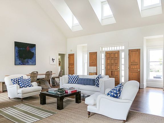Known affectionately throughout Bellport as the "Carriage House", this large 4-bedroom offers the ideal balance of privacy and convenience. Down a long gravel drive, this modern ranch rests on an acre+ of secluded gardens and is perfectly situated halfway between the village center and Country Club. The well-designed architecture flows cleverly and pairs large windows w/ soaring ceilings. The huge basement can accommodate a gym/art studio/playroom, making this an excellent year round retreat!