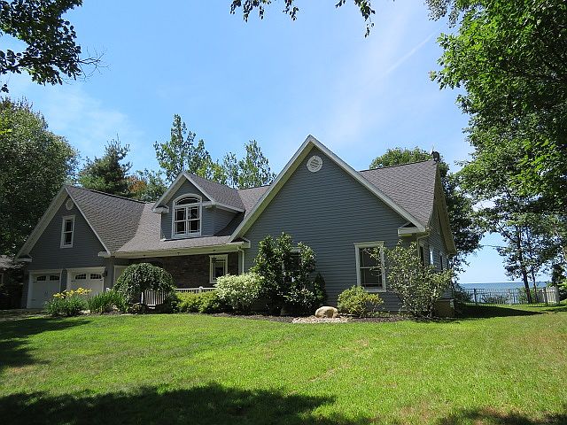 Only quality went into this AMAZING contemporary home with 120 feet of Lake Ontario frontage! From the moment you enter you will be in awe of how beautiful this home is. Gorgeous hardwood floors, incredible custom gourmet kitchen with quartz countertops, cherry cabinetry and center island that any chef would desire! Large livingroom with gas fireplace, family room, formal dining and master bedroom with his and hers bath,office, 3 additional bedrooms. Whole house generator, central air, fenced yard, and so much more!!!!