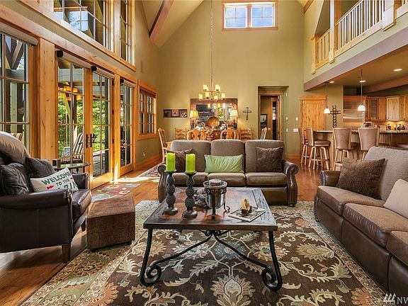 Spectacular cabin on Cabins Lake in Tumble Creek at Suncadia. Enjoy peaceful & serene lake views from your home, or from the covered wraparound deck w/ fireplace. The elegant vaulted great room, gourmet kitchen, comfortable den. main Master Suite & Jr Master Suite are all conveniently located on main floor. Upstairs there are 2 more ensuite bedrooms, plus flexible loft space. This beautiful Cabin is just steps away from the heart of Tumble Creek Club amenities (pools, restaurants, etc.)