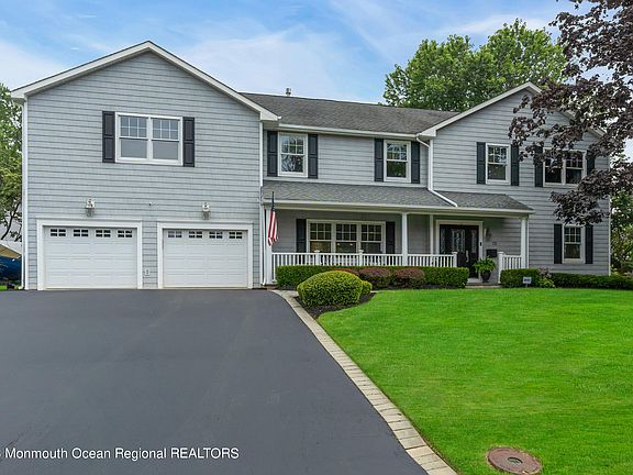 PRIDE OF OWNERSHIP is evident with this Custom 6 bedroom, 3 ½ bath Colonial situated in beautiful Oceanport. You will enjoy the open floor plan which is comprised of a Living Room, Kitchen w/custom cabinets, Stainless Steel appliances, Island seating and large Dining Area. The first floor is completed w/ 2 generous sized bedrooms, 1 ½ baths and a mudroom providing direct garage access. A perfect lay-out for extended family or overnight guests. Sliders lead to a deck, fenced yard, basketball court + shed. On the second level there are a total of 4 bedrooms with oversized closets including the primary bedroom which is complete with an en-suite and walk-in closet large enough for an extensive wardrobe. Additionally, the 2nd level features a massive Family Room and a private home office, a full hall bath w/double sinks, laundry room and access to large attic offering plenty of storage. Many features include a monitored security system, Arlo cameras, Ring doorbell and 20KW whole house generator which powers the entire home. Other highlights include an oversized driveway (parking for 6), a large 2 car attached garage w/storage area, covered front porch and in-ground irrigation system + interior features such as hardwood floors, recessed lighting throughout and two zone gas heat + cen air. A stunning home in ideal location in close proximity of park makes this property AN ABSOLUTE MUST SEE!!!!