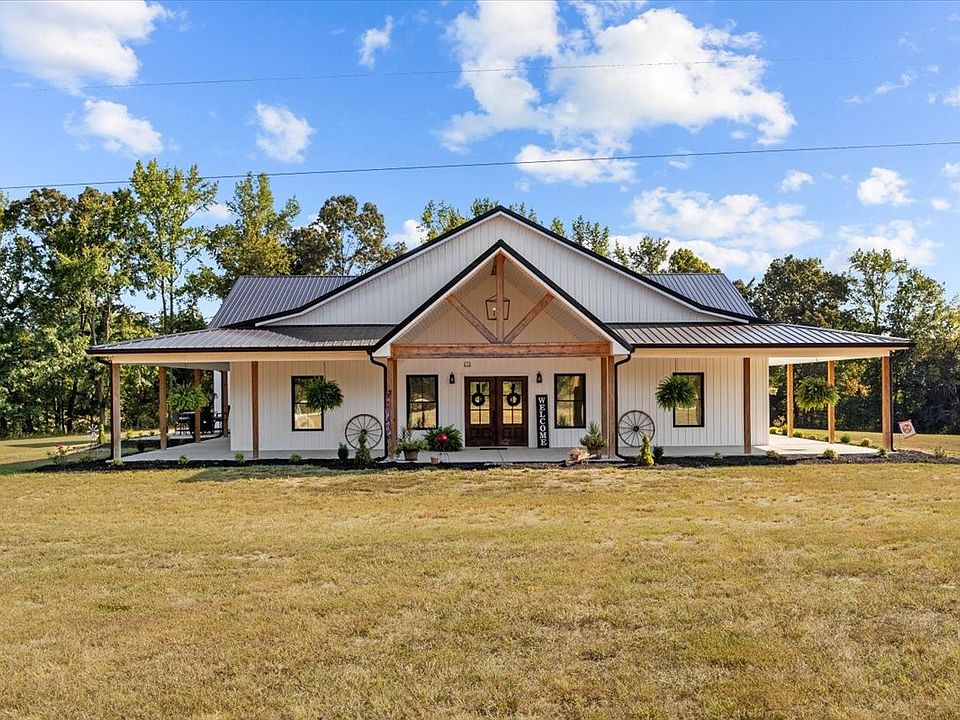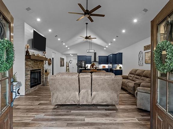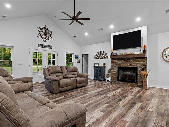 Stunningly beautiful home nestled on 5 unrestricted acres! Every room is SPACIOUS! Kitchen features custom built cabinets, gorgeous concrete countertops, copper farmhouse sink, gas stove, and a hide-a-way pantry. All appliances convey!! A magnificent stone fireplace accents the great room! Water proof LVT flooring throughout home, utility/laundry room equipped with a wash station for dogs, and butcher block countertops. Huge master bath, with tile shower and soaking tub, double vanities and walk-in closet!! Energy efficient tinted windows, house was wrapped in plywood, 4 inch slab with sleeved plumbing, 2 functioning wells on property, 40x80x12 shop with storage closet and an 875 sq ft mancave! Mancave has a half bath and utility/storage room, sink, gas stove, refrigerator, gas fireplace, is heated and cooled and set up for entertaining!! Very well designed, constructed and maintained, and is located in a beautiful area of the county. Fiber internet onsite and 7 minutes from I-40!!