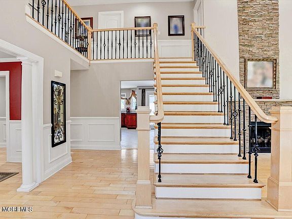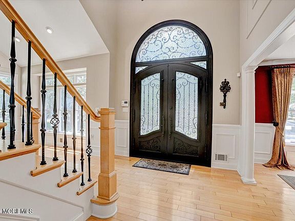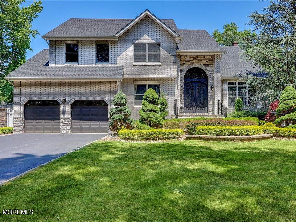 Elegant and stunning Colonial located in a desirable Manalapan location! Meticulously maintained, with brick front exterior, this home features 5 bedrooms, 2 full baths & 2 half baths.  Inside, you will find a beautiful open floor plan with custom molding throughout, maple hardwood flooring & Porcelain tile.  The two-story formal living room has soaring ceilings with a cozy, 2 sided stacked stone gas fireplace. Formal dining room leads into the custom gourmet eat-in kitchen with high end stainless steel Viking Appliances, a wine refrigerator, rich wood cabinetry, & grand central island. The inviting family room is also warmed by the two sided gas fireplace. Upstairs, you will find 4 bedrooms. The primary bedroom is gracious in size & offers full bath. The fully finished basement has been professionally waterproofed, includes a French drain system & 2 sump pumps with battery back-ups. It offers endless possibilities with multiple entertainment areas, custom molding & a half bath for additional living/entertaining space.  Outside, experience the gorgeous, private backyard with inground, salt water heated pool with waterfall and deck jets. Pool has brand new filter motor.  Enjoy Summer nights around the gas firepit and cooking in the custom outdoor kitchen with gas grill. GAF Master Elite Certified Timberland roof is 5 years old. Private server closed circuit surveillance system is included. Brand new A/C, newer furnace & hot water heater. Conveniently located close to Route 9 and major highways. Make your appointment today!