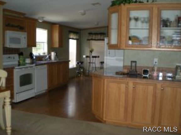 Like new, upgraded manufactured home. (Homes of Merit). Nicely set on 1 acre with lots os privacy. 3/2 with screened porch, nice wood decks front and rear. Fenced and gated in front. Upgrades include crown molding, tile in kitchen, storm doors, fully guttered, tape and textured walls, etched concrete skirting, rv hook up. Large closets. Home nice and light and open floor plan adds to roomy feeling. Come and take a look at this home. Owners have over $100,000 in property. Brand new carport just installed.