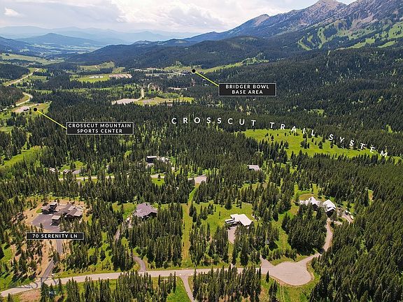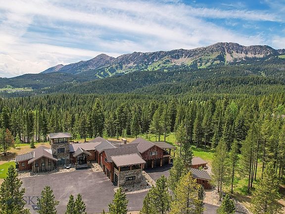 Set in the shadow of Ross Peak and the mighty Bridger Mountain range in the secluded and private Ross Peak Ranch development, there is no need to maintain large acreage with this location, as you are surrounded by a virtual playground comprised of Bridger Bowl Ski area, the 500-acre Crosscut Mountain Sports Center and thousands of acres of National Forest. This home was thoughtfully designed with no detail left unmastered. The heart of the home is the impressive Great Room - featuring a thoughtfully designed kitchen with Hestan appliances, a heated island and a glass-encased focal point 1,000-bottle wine room all opening into dining and living areas with floor-to-ceiling windows and a statement linear gas fireplace with custom rockwork. Just off the kitchen is the Eleanor Room - designed for intimate gatherings or a quiet place to cozy up to the gas fireplace and read. The main level Primary Suite is a true retreat featuring large glass doors, a sun-soaked office nook, noteworthy walk-in closet with island and an opulent bath with luxurious stone detail. Leading to the 3rd floor Tower Room, a private 2nd floor office space and powder bath will delight those who work from home. The Tower Room provides a 360-degree view of the surrounding mountains, sunrises and sunsets. A unique space guests are not soon to forget. On the other side of the home, a separate 2nd floor space features two additional bedrooms, 3/4 bath and large gym with 3/4 bath, both with private covered patios. The mudroom/laundry is spacious with ample locker style storage and a dog wash station and provides transition to not one but two! 3 car garages. Additional details include German Unilux tilt-swing windows, dual system radiant in-floor heat with central air, Lutron window shades, whole home generator, storage building, and an outdoor covered space for your furry friends. Make 70 Serenity Lane your new Montana Oasis.
