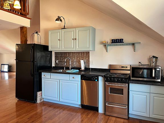 Gorgeous second floor barn apartment. This spacious, airy and high ceiling unit is perfectly located on Silver street, close to route 16 and steps from WildCat bus route. The loft overlooks the open living area. Master bedroom with bright walk in closet. Second bedroom with ceiling fan. Plush carpets in bedrooms with beautiful wood throughout. Efficiency stove in kitchen and small dishwasher. Bathroom has shower tub and washer/dryer conveniently located. This is a smoke-free property. No pets, no exceptions (thank you). Tenant pays for utilities (gas and electric heat/hot water, electricity). Owner pays water and sewer.