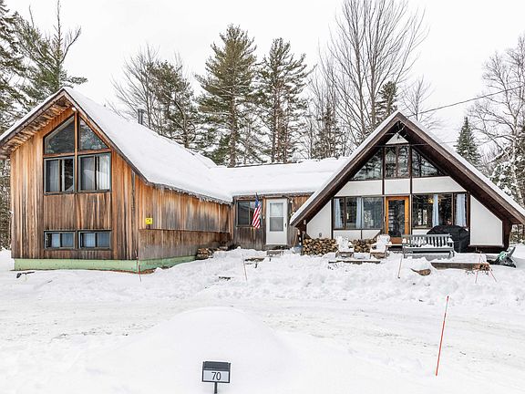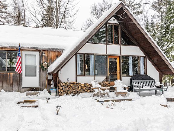 The original chalet was built I 1960 and a similar additional chalet was adjoined in the 1980’s. As you enter the foyer where the 2 residences were joined, to the right is the cozy living, dining and kitchen area with 2 bedrooms and a ¾ bath. To the left of the foyer is the rec room, primary bedroom with full bath, and 3rd bedroom, now a bunkroom. To top it all off, the roof is new, as is the boiler, new refrigerator, new electric range, new dishwasher and a new 200 A breaker panel with upgraded electrical wiring including new GFCI outlets. One will surely appreciate the wonderful barn/garage that has a propane heater as well as a woodstove hookup. Use as a garage or large recreational area for billiards/ ping-ping, etc. There is storage above on the 2nd level. There is a workshop area and attached shed that is useful to house lawn, snow blower equipment and the like. The location is fabulous as it is literally minutes to Cannon Mountain for skiing, Echo Lake for a fun beach/swim experience and many hiking trails that abound in this area. Biking Trails are another activity that is very accessible from this location. Also, grocery, hardware store, brewery and other eateries are also within minutes. Showings begin by appointment on Sunday, February 26th from 11AM-2 PM.