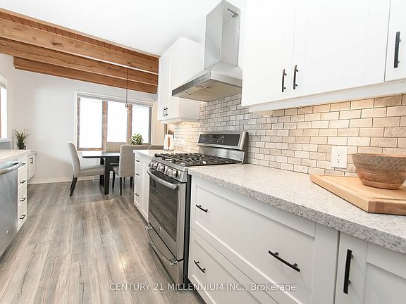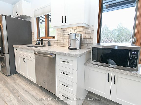 View of Blue Mountain and Minutes to Collingwood! Fantastic location for Osler, Craigleith, Alpine members or Blue Mountain enthusiasts. Detached home with Garage, ample parking secondary legal rental unit. This Detached home with garage, ample parking, and legal rental unit. 4-season chalet in desirable neighborhood with trail access. Updated 4-bed, 3-bath, gas fireplace, stainless steel appliances, dining area, lots of windows, wrap-around porch, 1.5-car garage. Sleeps 9 comfortably with main level queen bed, double bunk bed, king bed in master, queen bed in lower level, and den/office space. Backyard shed converted to cozy sleeping cabin with ensuite bathroom. Easy access to skiing, hiking, biking trails, provincial park, Niagara Escarpment. 1 minute to Blue Mountain village. Walk to Scandinave Spa. Enjoy Blue Mountain views from porch and balcony. BBQ and covered space. Ready for your family to enjoy - a must-see!