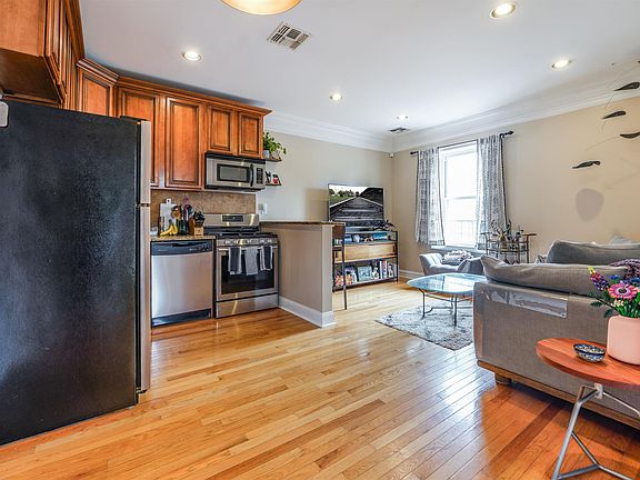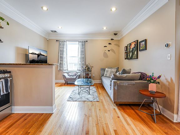 Nestled in the vibrant Jersey City Heights, this well appointed 2 bedroom corner condo ideally located just a few blocks from the elevator to 9th Street Rail Station. Upon entering you are greeted by an open floor plan flooded with natural light featuring a fully equipped kitchen with granite countertops and stainless steel appliances. Additional home features include pristine hardwood floors, recessed lighting, and Central A/C. Building also offers laundry and a private storage room in the basement. Situated a short distance to bustling Central Avenue, expansive Washington Park and Riverview Fisk Park with NYC views and easy access to major highways and NYC transportation.