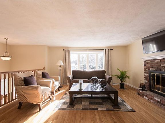 Beautiful raised ranch located on a quiet dead-end street in the Quidnesset area of North Kingstown. This 4 bedroom home offers an updated kitchen with maple cabinetry, stainless steel appliances, backsplash, and granite countertops. Opens to large dining and living area with a brick fireplace, great for entertaining. Newly refinished hardwood floors. Central air. Sliders off the kitchen open to a large deck. Finished lower level has a fourth bedroom, family room with brick fireplace, wet bar with additional area for playroom or fitness plus a half bath. Country-like setting minutes from Post Road, 95, Rte 4. Close to schools, recreational facilities, bike path, historic Wickford Village, and Downtown East Greenwich.