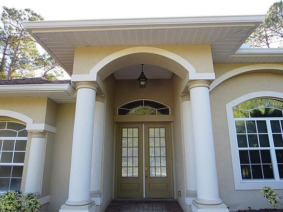** PLEASE ENJOY THE 3D INTERACTIVE VIRTUAL TOUR ASSOCIATED WITH THIS LISTING.Impressive Custom home located on oversized corner lot surrounded by wooded areas for lots of privacy. Stunning home boasts Majestic Pillared Entry way, soaring ceilings & stone tile imported from Spain. You will be Wowed entering the double French doors. The foyer is graced w/pillars & crown molding. Dining Room (currently used as a sitting area) & Living room are Spacious & Open w/French doors to the lanai. Home has surround sound system, designer lighting & ceiling fans. The beautiful gourmet kitchen is a chef's delight. It features beautiful solid Cherry 42" cabinets w/crown molding, granite counter tops, stainless appliances & closet pantry. A breakfast bar & nook w/ an aquarium window overlooks a private wooded area. A huge Master Ensuite features a ceiling w/lighted double trays & crown molding, a large sitting area w/ French doors to the lanai. 2 walk-in closets & a beautiful master bath w/jetted tub,large tiled walk-in shower w/ overhead rain shower, 2 vanities w/glass vessel sinks & private w/c. There are 2 spacious guest bedrooms w/hand scraped walnut floors. An indoor laundry room w/ cabinet laundry tub & storage closet. There is a paver/brick driveway & walkway to the front entry, lush tropical landscaping & irrigation system & plenty of room for a large pool. Conveniently located to I-75, shopping, restaurants, golfing & the Beautiful Gulf beaches of Boca Grande & Englewood. This could be YOUR Florida Home!