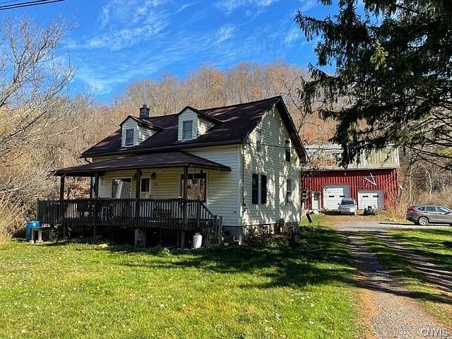 Sweet and well appointed 4 bedroom Cape Cod with updated kitchen and bathroom. Living room, dining room, kitchen, fourth bedroom and full bath with laundry on the first floor. Three bedrooms up, with beautiful wood plank floors in upper level. Relax on the back porch and watch ducks on the pond, or wander through nature on your 23+ acres, complete with stream, fruit trees, blueberry bushes and raised garden beds. The large barn offers indoor parking for two vehicles, ample workshop space and storage on three levels, and a newly constructed space for rabbits or chickens in the lower level. So much to love about this fantastic property! Come see it today!