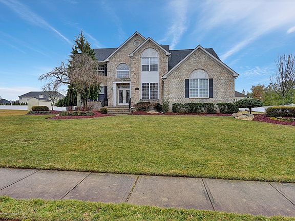 Sought after Marlboro Manse. This 4/5 bedroom 3 full and 1 half bath full brick front colonial features grand two story entry. Formal living room and dining room with custom molding and gleaming hardwood flooring. Family room w/stone surround wood burning FP. Open to Gourmet kitchen with granite counters,custom 42'' cabinetry and newer stainless appliances.. 9ft ceiling on 1st level. Bedroom/office on 1st level. A true master bedroom suite with sitting room, two walk in closets, full bath with double sink vanity with granite counters. Spacious bedrooms with plenty of closet space. Full finished basement with full bath. Paver Patio, Large level Backyard, underground sprinklers, newer roof, gutters and leaders. Must see to appreciate! Great location for commuting!