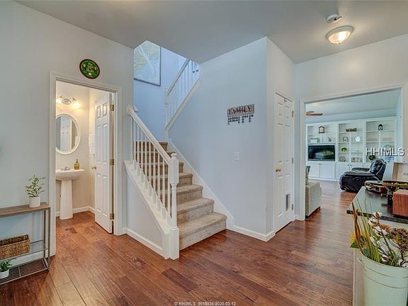 Get into the "Bluffton State of Mind" in this gorgeous home with a fully fenced in, HUGE backyard with a firepit & private garden. Designed for Main level entertaining, welcome guests through your covered front porch into a formal dining room. The Great Room w/hand scraped wood floors & built-ins flows into an inviting kitchen w/SS appliances, cherry cabinets, large island & dining area w/ NEW flooring. An expansive 2nd Floor Master features a generous WIC, glass enclosed shower, & private balcony. TONS of upgrades- BRAND NEW dishwasher & washing machine, JUST painted, 2 car garage w/ workshop area & app-controlled door, Newer HVAC (2016).