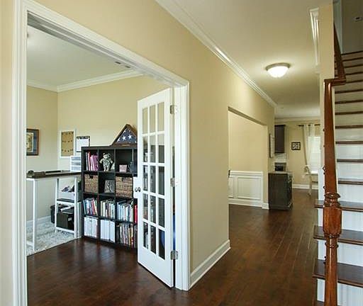 Front covered porch looks out to green space, great place to have a picnic, kick a soccer ball or just hang out with neighbors. 4 bedroom, 3 bath, w/media room. Features the first floor are an office w/French doors, bedroom and full bathroom, Kitchen w/granite counter tops, tile backsplash. Stainless stove, microwave & dishwasher. Formal Dining and decorative hand rail w/iron balusters & wood treads and wood floors on first floor. Second floor features master bedroom with sitting area, his/her closet. Master bathroom has separate tub and shower along with double vanities. 2 secondary bedrooms, nice media room, secondary bathroom and laundry room finished off the upstairs. 12 x 15 screened in back porch over looks fenced in backyard. Woods in back for privacy. Great neighborhood w/salt water beach entry pool, fitness center, playground & clubhouse. Prewire speaker wire screened porch & bkfst area SPRAY FOAM insulation in roof line. Call today to view this gorgeous home. For rent too.