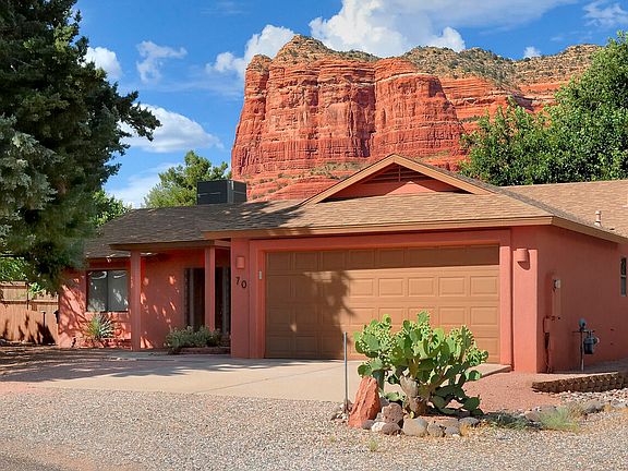 This 3 bedroom 2 full bath gem just sparkles on the inside with its easy living open floor plan & split bedroom layout, stainless kitchen and marble bathrooms. Outside, your unique, low maintenance back yard offers stunning, towering views of 2 of Sedona's treasured icons - Bell Rock & Courthouse Butte. Every single sunset reflecting on the red rocks is simply an outstanding daily treasure very few people ever get to experience - and you don't even have to leave your home. Whether this is your permanent home, (as it was for the owner's mom) , or your Sedona vacation getaway, or an income generator, this rare home may just be the perfect place for you. It can be purchased turn-key ready with furnishings on a separate bill of sale. Established vacation rental (30 day minimum). The last extended monthly rental was $3250.