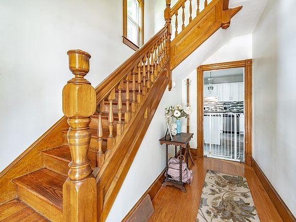 Enjoy the beauty of this updated and well maintained home with fenced in back yard and 1 car garage. Updated kitchen (glass tile back splash, stainless steel appliances, tile floor and a large pantry, center island). Open concept floor plan on 1st floor with added family room. Gorgeous full bath renovations including beautiful clawfoot tub, tiled surround so a shower is an option and tiled flooring is gorgeous! Home has original woodwork throughout, newer windows, many updates. The 2nd and 3rd floor flooring has all been updated with a mixture of original wood flooring and beautiful laminate flooring. Three bedrooms on 2nd floor and 2 more finished rooms on 3rd floor. Roof (2014), furnace & HW, gutters, storm doors (2015) Full basement with bulkhead for easy access. Finished half bath with bonus shower in basement, Showings begin at Open House on Saturday 8/13, 1 - 2:30