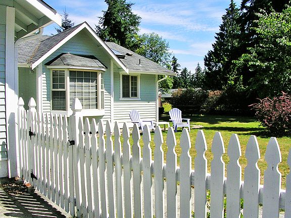 Lovely, well maintained 3 bedroom, 2 bath home sitting on large corner lot in sweet family neighborhood of Fir Circle. Picket fence and hedges provide privacy. South facing kitchen and eat-in nook with bay window. Open view from kitchen to living room and dining room. Newer custom maple cabinets with built-in wine rack. Light oak 2" flooring in living room and hall. Master Bedroom features updated Master Bath with custom sinks, jetted tub and large walk-in closet. Living Room is plumbed and ready for your propane stove and there is a hookup for your gas bbq on back patio. Deck off living room through sliding glass door overlooking private backyard. Give sellers a call at 360-643-1267 for more information on this sweet home in cozy neighborhood in Port Hadlock.