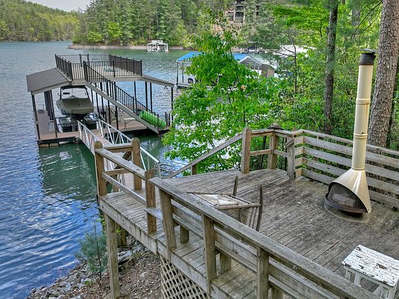 Quintessential Lake Blue Ridge Log Home! Located on Deep Water in a VERY sought after, protected cove. This property boasts breathtaking views of the lake and surrounding mountains, w/ easy access to the Aska Adventure Area (hiking, biking, trout fishing & tubing). Cozy & inviting great room, adjacent dining w/wood burning fireplace, full kitchen w/small island & 1/2 bath. Screened porch offers views of the lake & ample space to entertain. Travel upstairs to find 2 bedrooms, full bath & a loft area perfect for a home office or extra sleeping. Full finished terrace level features a great room, additional sleeping space & a full recently updated bath w/glass enclosed tile shower. Outside features a private double decker dock in a quiet cove w/ boat lift, & top tanning deck making it easy to enjoy all the lake has to offer. Offered fully furnished & would make a great vacation rental.