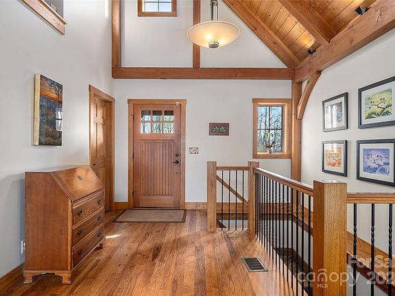 Discover your sanctuary where nature and luxury harmonize seamlessly in quaint Black Mountain. This beautifully crafted Timberpeg construction offers a blend of modern comforts and rustic charm perfect for those seeking a tranquil retreat. 4 bedrooms and 2.5 baths provides ample space for relaxation and entertainment and the convenience of an elevator ensures accessibility throughout. Embrace sustainable living with the property's solar panels and generator, offering both eco-consciousness and peace of mind. Admire tongue and groove vaulted ceilings that elevate the living spaces, while embracing serene mountain views and the tranquility of privacy within a gated community. Outdoor enthusiasts can immerse in the natural beauty of the community with walking trails winding through the lush greenery and a charming picnic area, perfect for alfresco dining and gatherings. Whether you are seeking a quiet escape or a vibrant community atmosphere convenient to amenities, this gem has it all.