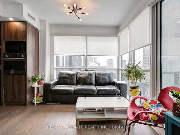 This Luxurious 2 Bedroom And 2 Bath Condo Is Located At The Most Iconic Address In The Financial District. Sum-Filled And Spacious, This Unit Features A Master Ensuite, A Locker, Superior Finishes And Close To Eaton Centre, Restaurants, Financial District And Universities. Easy Access To The Path And Subway. Floor To Ceiling Windows And A Good Size Balcony. Live In The Heart Of The City! 24/7 Concierge, Gym, Golf Simulator, Theatre Room, Guest Suites, Party/ Meeting Room & More.