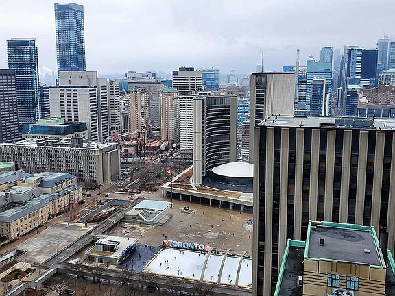 This Bright And Spacious Corner Unit Suite Is Located In The Heart Of The Financial District. Large Windows With View Of Nathan Philips Square. Enjoy A Private Terrace Attached To The Master Bedroom. Upgrades Done Throughout The Home, Shows Well! Steps To Subway Station, City Hall, Court House, Eaton Centre.