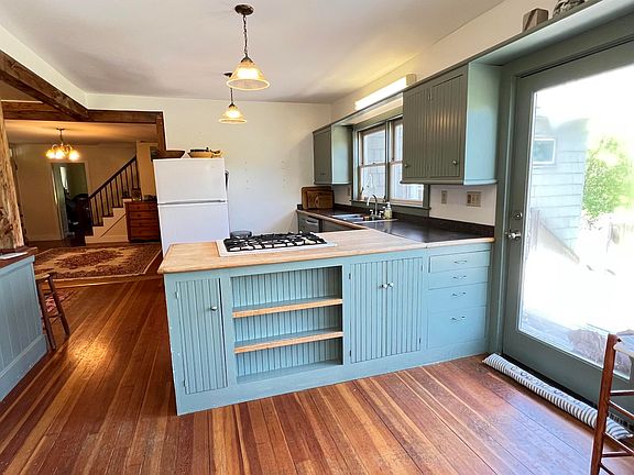 Lovely 1890 Cape situated on 4.5 acres off a quiet dead end road with open land, large old barn, detached 2 car garage and an easy commute to Keene. Enter into large mud room and kitchen area. Lovely breakfast nook is near the kitchen. The kitchen looks onto the back deck and fenced in area and is accessed through the french door in mud room. The family room is centrally located and could be used as a larger dining room that offers a pretty original built in. Home gives an open concept vibe. Large living room runs front to back with wood fireplace that has a wood stove in place. This is a charming room perfect for large entertaining. Primary suite is on the first floor. Features walk in closet, full bath with laundry and a large light filled bedroom. Lovely wood flooring through out first floor. Upstairs is a large bedroom over looking the side yard and unusual two doors to enter or exit. Second bedroom on this floor is slightly smaller. At the head of the stairs a third room suited for an office, playroom or craft room. Second full bath is located on first floor next to primary bath. 4.5 acres includes a back field that could be fenced in for animals, room for gardening, small pond, apple trees, perennial gardens. Newer septic. Two car garage is detached and is over sized giving more space for storage. Lovely, large, three story, post and beam barn gives space for animals or your large projects. Showings start on Saturday, June 10th with Open House.