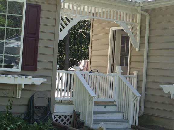 Beautiful country cape nestled on quiet cul-de-sac. 2-story family room with fireplace, french doors, and skylights. Kitchen and breakfast nook with custom wood trim and bay window. Master bedroom and 2nd bedroom on main level. 2nd Bedroom (or sunroom) features skylight, custom made closet, and french doors with rear deck entrance. Master bath has double vanity, separate shower, and jacuzzi. Second floor features two bedrooms, each with their own full bath and landing which overlooks family room and foyer. Custom woodwork throughout the home, wrap-around porch, and driveway entrance. Attached oversized two-car garage with second level currently being used as a workshop. This home is truly unique with many features that make this a MUST see. Call for more info and to schedule a showing! Seller to paint upper level and main level bedrooms buyers choice of color and steam cleam carpets.